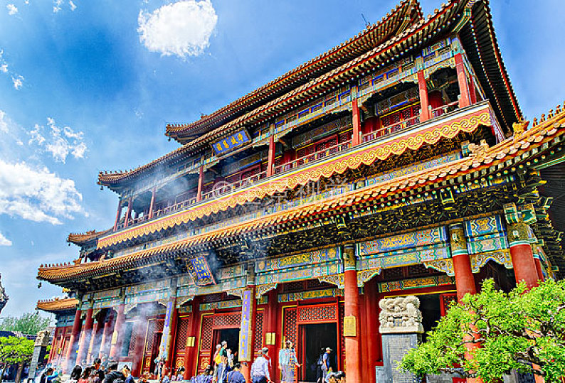 雍和宫,1983年被国务院确定为汉族地区佛教全国重点寺院,该寺院主要由三座精致的牌坊和五进宏伟的大殿组成。从飞檐斗拱的东西牌坊到古色古香东、西顺山楼共占地面积66400平方米,有殿宇千余间。
